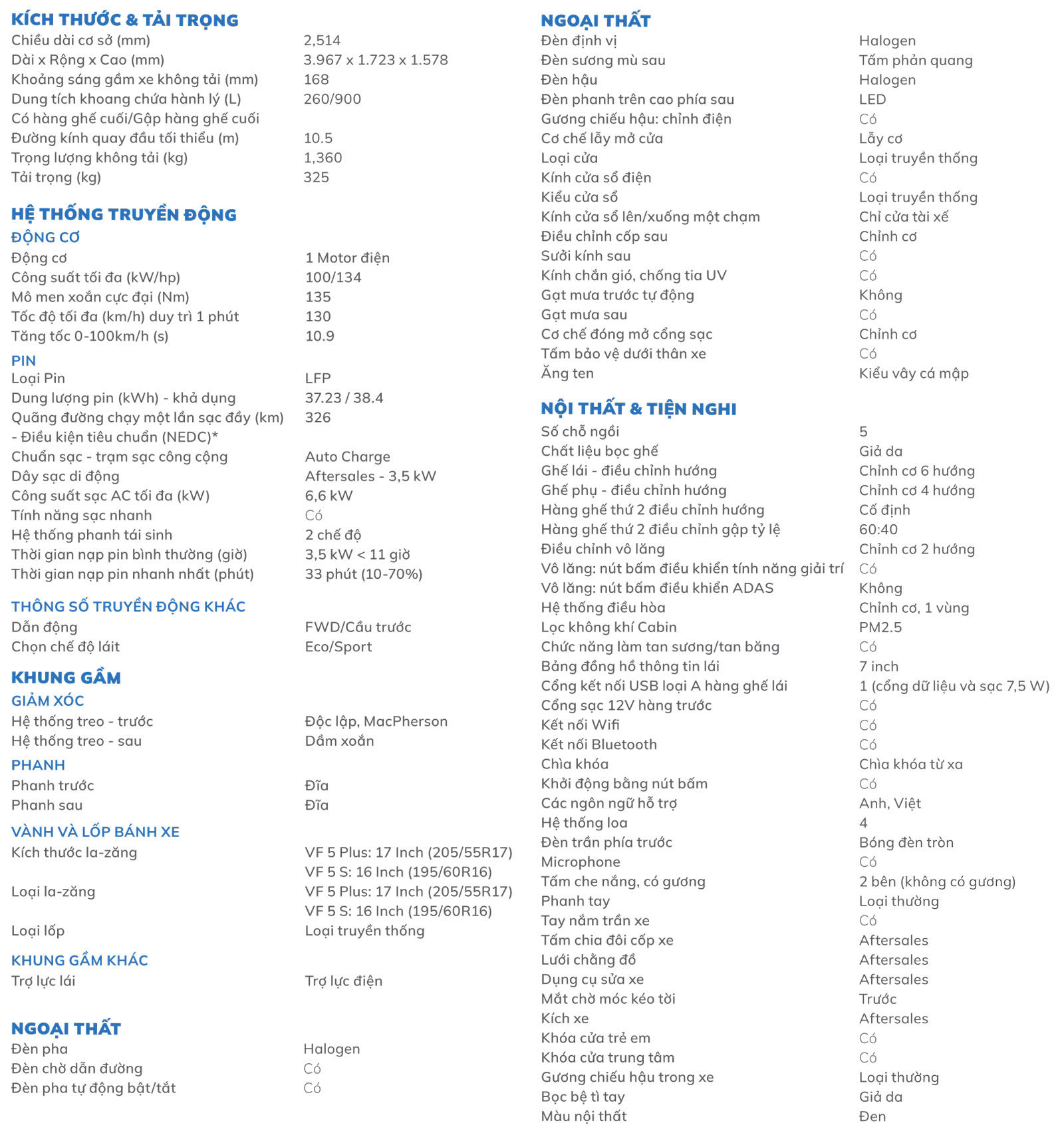 - Dung lượng pin khả dụng 37,23 kWh di chuyển được 326,4 km sau 1 lần sạc đầy.