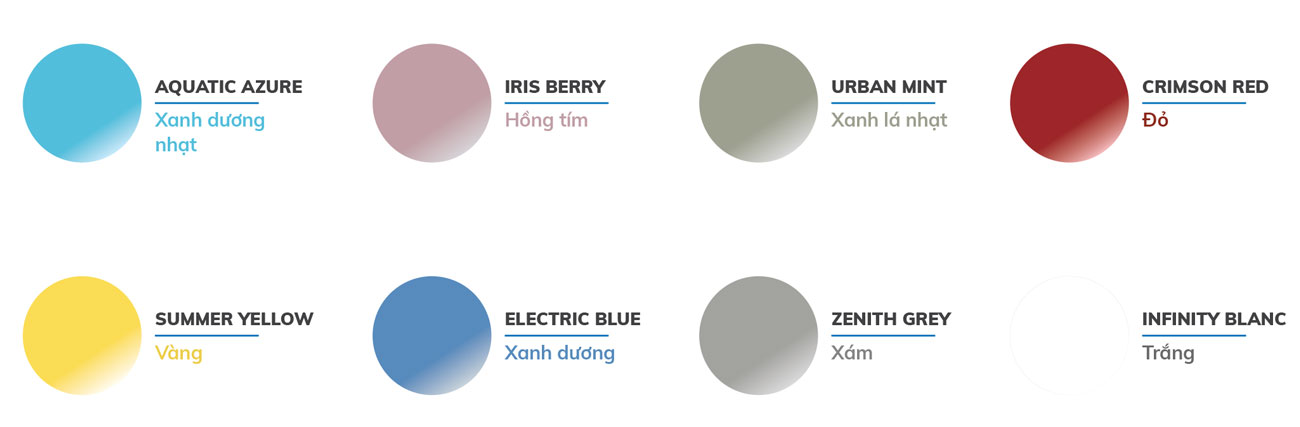 Sống thần thái và phong cách cùng dải màu mới đầy cảm hứng đến từ “đàn anh” VF 5 Plus. VF 5 Plus với dải màu đa dạng, gồm 4 màu cơ bản đã có là Xám, Đỏ, Xanh dương, Trắng; và 4 màu nâng cao mới là Vàng, Hồng tím, Xanh dương nhạt và Xanh lá nhạt.